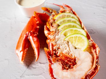 Demi-homard en bellevue, jardinière de légumes, sauce cocktail et poivre timut