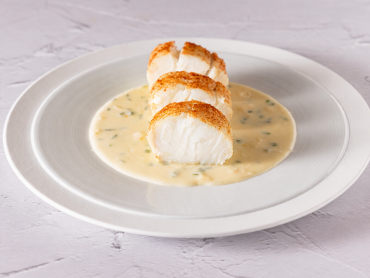 Filet de sandre et sa mousseline, dressé façon cannelloni, sauce à l’Epoisses Berthaut