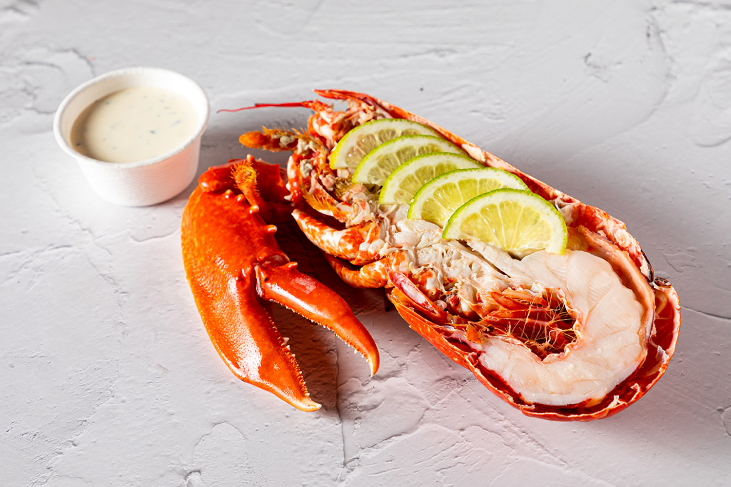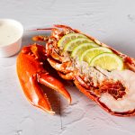 Demi-homard bleu cuit en nage, sauce cocktail crustacés