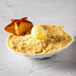 Noix de St Jacques Rôties, concassée de gambas, sauce beurre blanc, chapelure brune, étoile feuilleté et noisette beurre AOP
