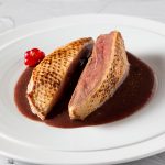 Filet de canette braisé, coriandre et poivre noir, sauce pain d’épices et miel Bio caramélisé