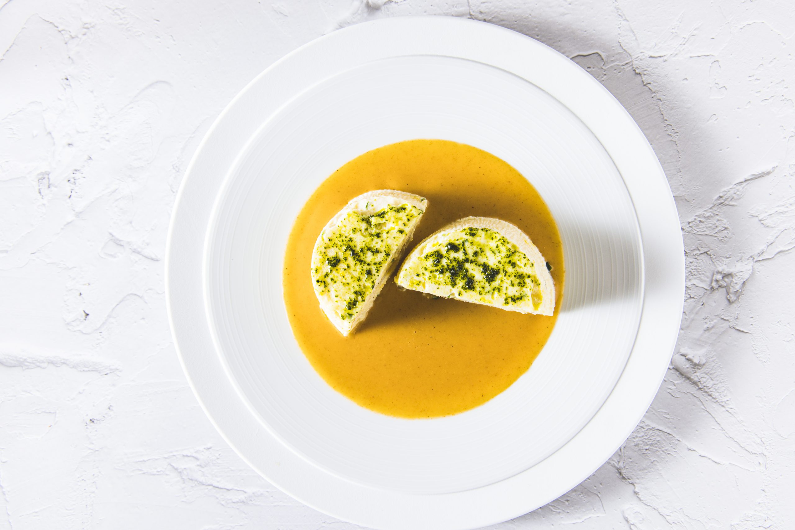 lotte de Roscoff, cuisson à juste température, agrumes et baies de Timut, Sauce à la Bisque de homard réduite