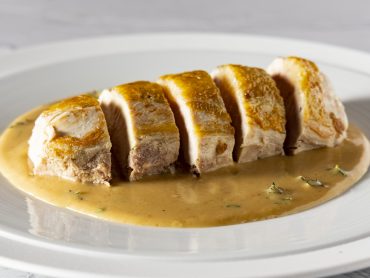 Cuisse de poularde entièrement désossée farci au foie gras sauce savagnin